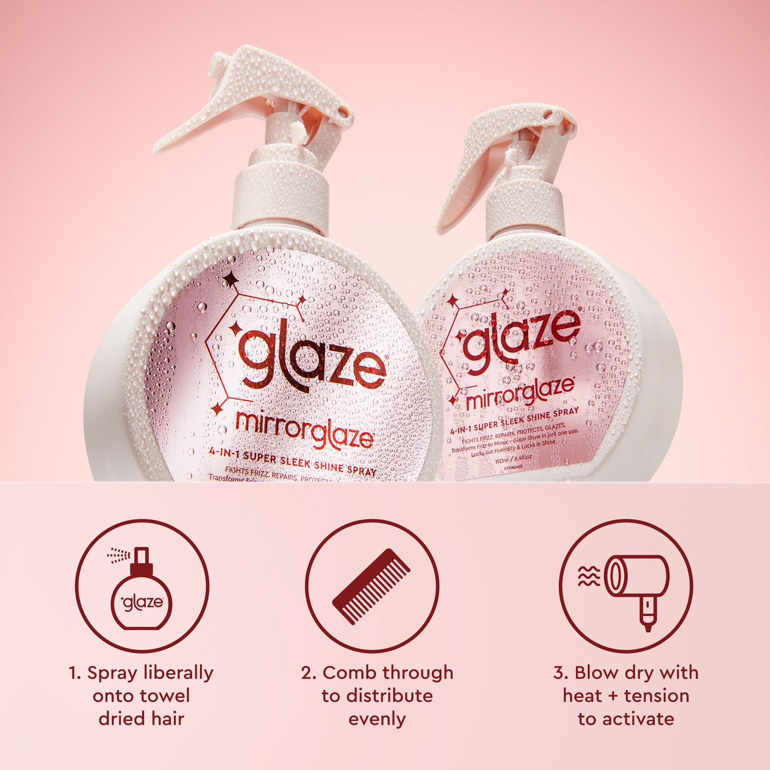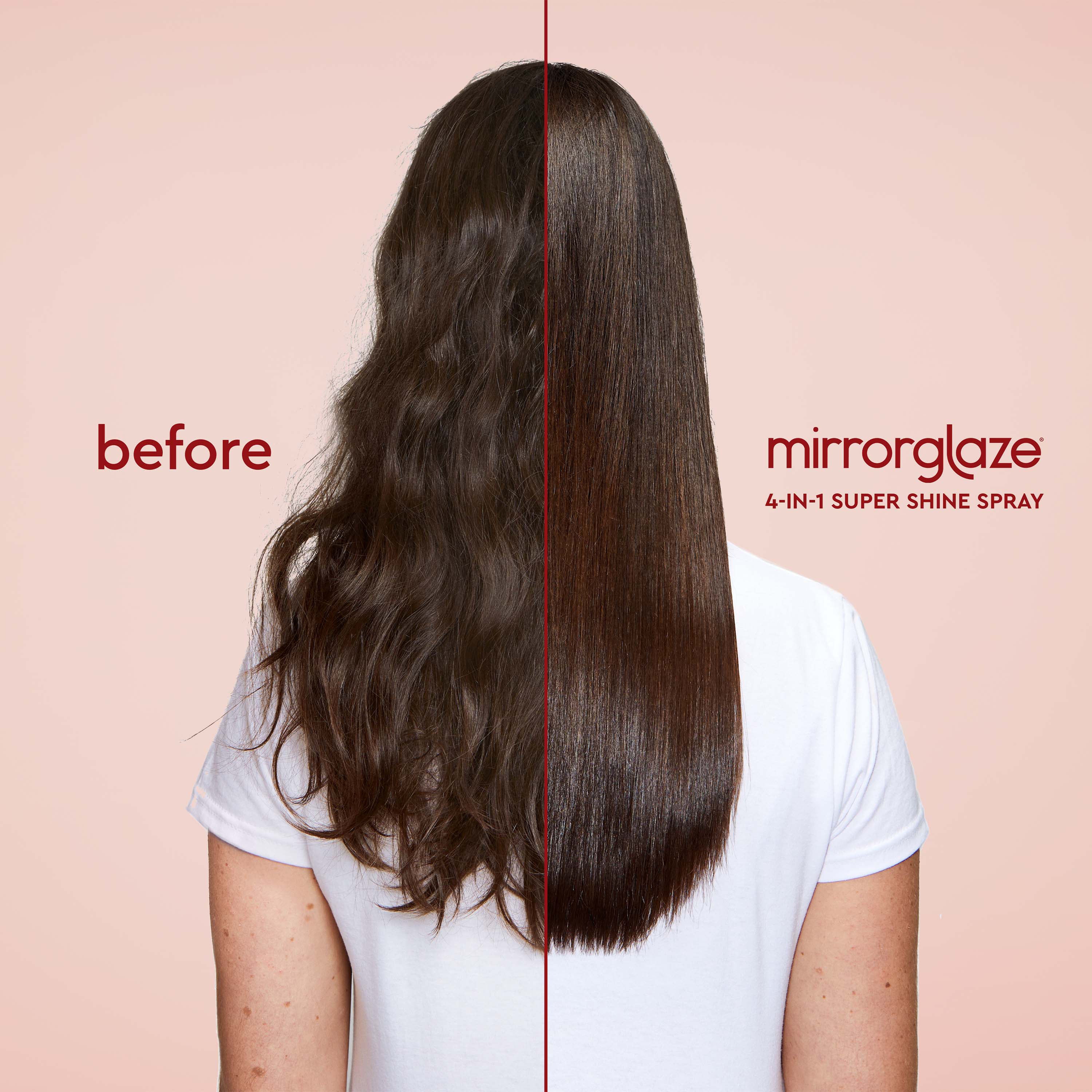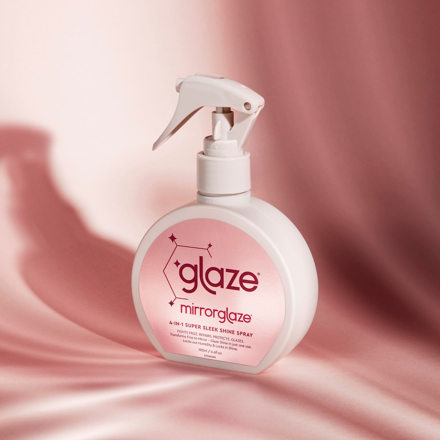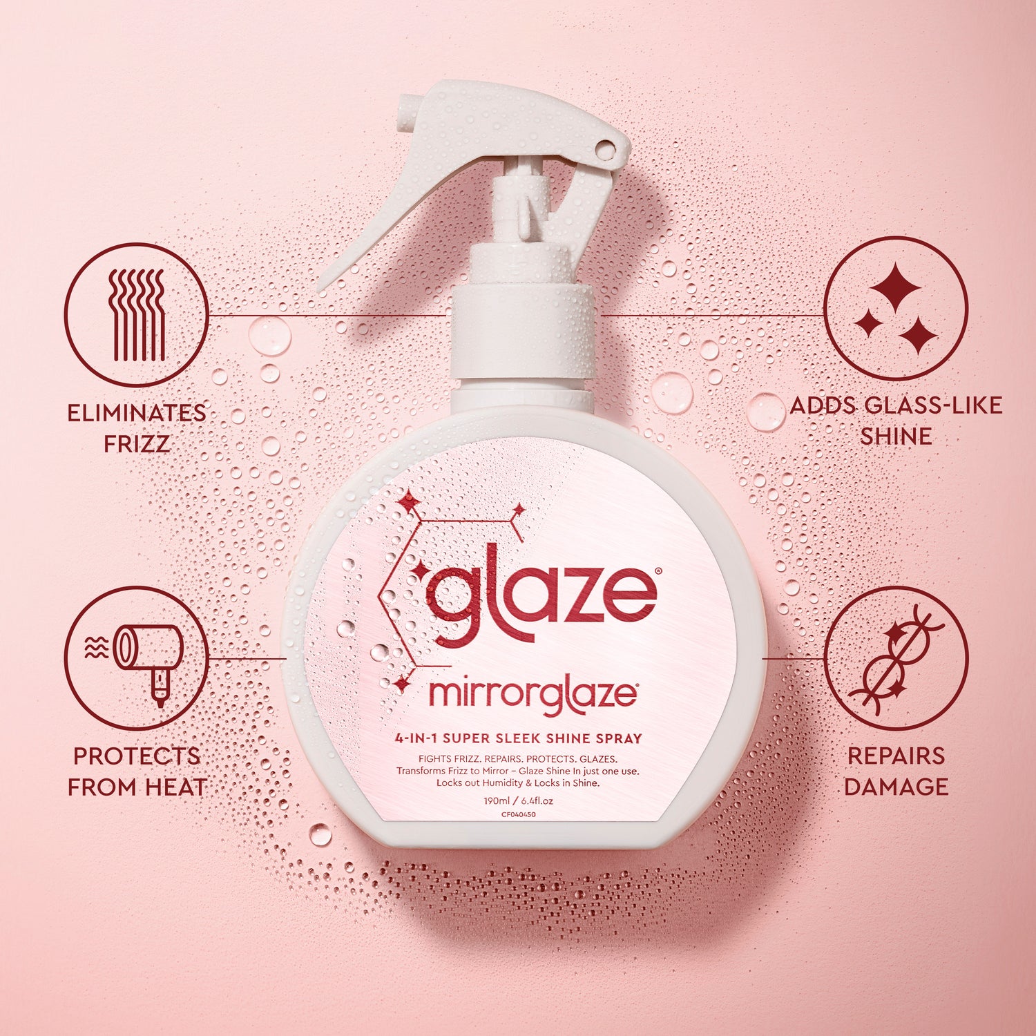 Powered by Glosslock Technology that locks out humidity & and locks in shine, Mirror Glaze is clinically proven to smooth and protect hair. Mirror Glaze 4-IN-1 Super Sleek Shine Spray transforms frizz to smoother, sleeker, glass-like hair that lasts up to 3 washes.