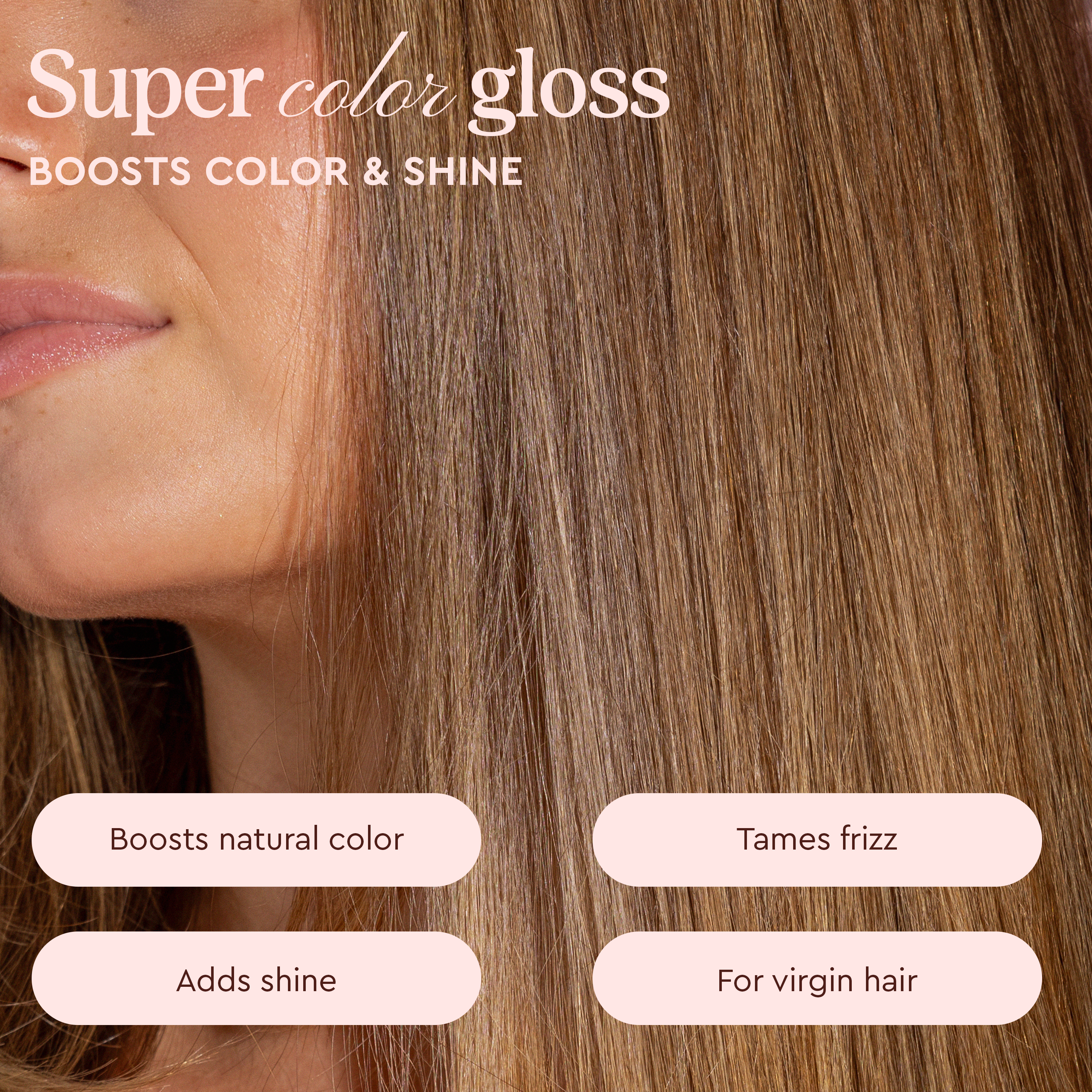 Supergloss is a shine boosting, semi-permanent colorant that enhances your natural hair color to deliver divine shine and super softness. Think of it like a tinted moisturizer, but for your hair, designed to improve its natural look and feel